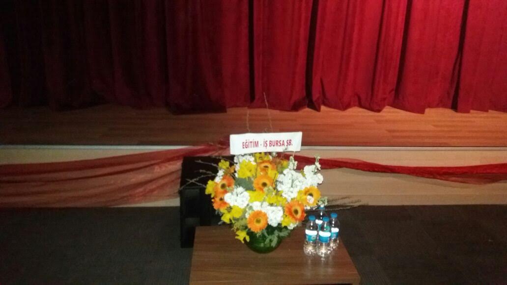 Eğitim-İş Bursa Şube Başkanı Özkan Rona, bizzat etkinliğe katıldığı gibi, bir de çiçek yollar.
