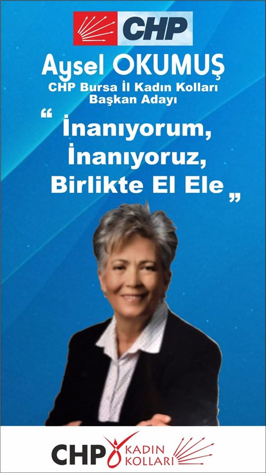 Eski belediye meclis üyesi Okumuş, “Merhaba, partimin aydınlık yüzleri.Örgütümüzle, emeğin kutsallığına inanarak, birlik ve beraberliğe en çok ihtiyacımız olduğu bu günlerde, umut ettiğimiz yarınlar için, ‘ben de varım’ dedim. Meydanlarda, sokaklarda, fabrikalarda, tarlalarda birlikte, el ele, omuz omuza yürümek için CHP il kadın kolları başkanlığına adayım” açıklamasıyla adaylığını ilan etti.