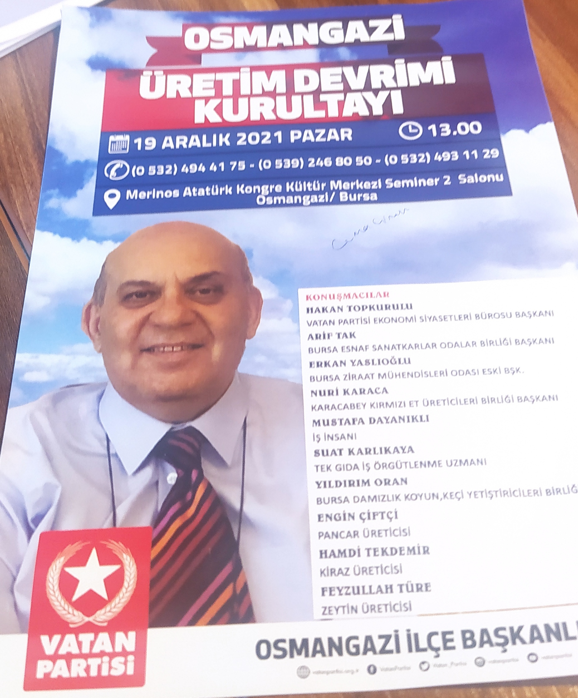 Sağ olsun kurultayın davetiyesini vermek için Vatan Parti’nin uzun yıllar il başkanlığını yapan Nadir Erol ile Osmangazi yönetiminden Cuma Çimen geldiler.