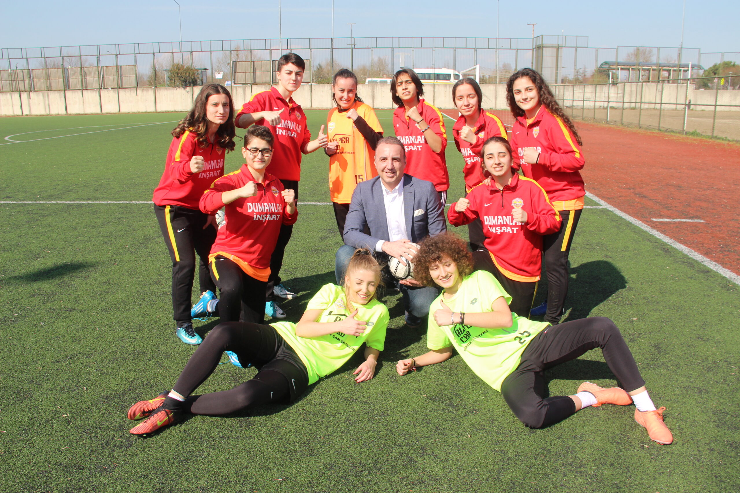 A Takım’da 34 kızımız var, U 15’te de 15 kızımız top koşturuyor. Toplamda 50 lisanslı futbolcumuz var. Bunun yanında spor okullarımız var. Pandemide kapandı ama tekrar açmayı düşünüyoruz. Oyucularımız 1998, 1999, 2003, 2005 doğumlular. Belli bir yaşa geldikten sonra futbolu bırakıp, kendi hayatlarını kurmaya başlıyorlar. Daha çok 24-25 yaş ortalamasındalar. Çoğu futbolcumuz lise son ve üniversite 1. sınıf öğrencisi. Az da olsa maddi katkılarımız oluyor. Maç başına harçlık veriyoruz. Ama hedef büyüdükçe onlara daha fazla imkan açabileceğiz.