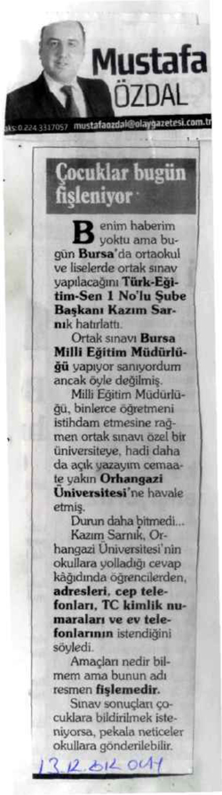 Cemaatçi Orhangazi Üniversitesi’nin ortak sınav adı altında 100 binden fazla öğrenciyi fişlediği skandal, onun valiliği döneminde Bursa‘da oldu.