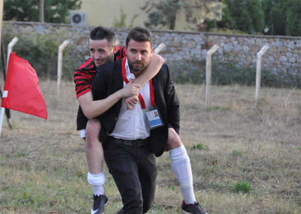 Sırtlanan kişi bir futbol kulübünün futbolcusu.