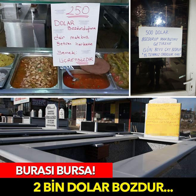 Bursalı mermerci, 2 bin dolarını bozdurana mezar taşı taahhüt ederek, “Dolarını bozdur, mezar taşını götür” sloganıyla, kampanyayı renklendirdi.