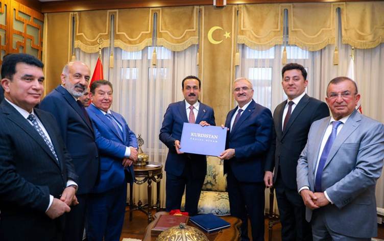 Erbil Valisi Omid Xoşnav, 1’inci Mezopotamya Turizm ve Gastronomi Fuarı’na katılmak üzere gittiği Diyarbakır’da ziyaret ettiği Vali Karaloğlu’na Kürdistan albümü hediye ediyor.