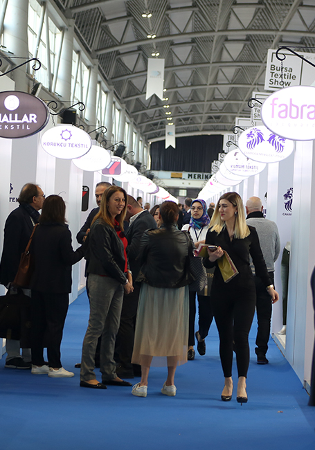 Renk renk kumaş kartelaları, envai çeşit gömlekler, kadın ve erkek giyimin nadide örnekleri, alın beni dercesine raflarda arz-ı endam eden son moda ev tekstili ürünlerin sergilendiği stantlar…