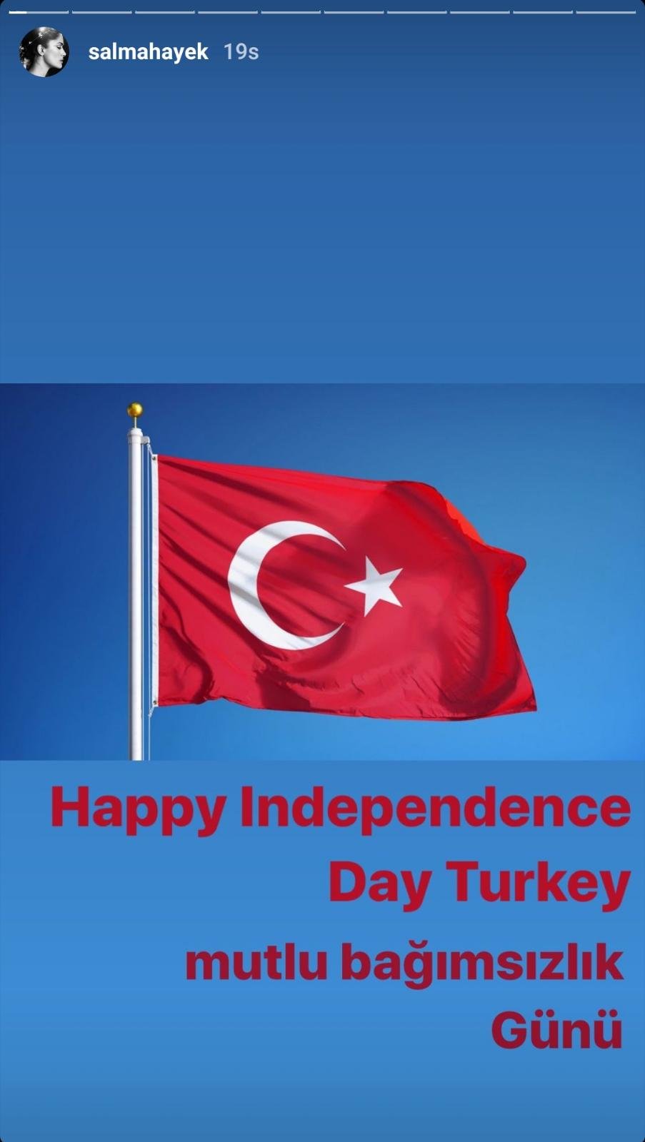 Salma Hayek, sosyal medya hesabında 19 Mayıs Atatürk’ü Anma, Gençlik ve Spor Bayramı’na özel bir paylaşımda bulundu.