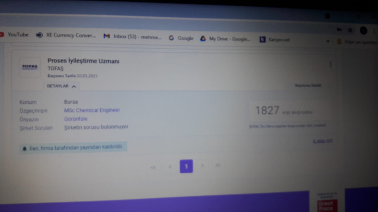 1 ay önce TOFAŞ’ın proses iyileştirme uzmanı aradığını ve bu tek kişilik pozisyona bin 213 mühendisin başvurduğunu yazmıştım.