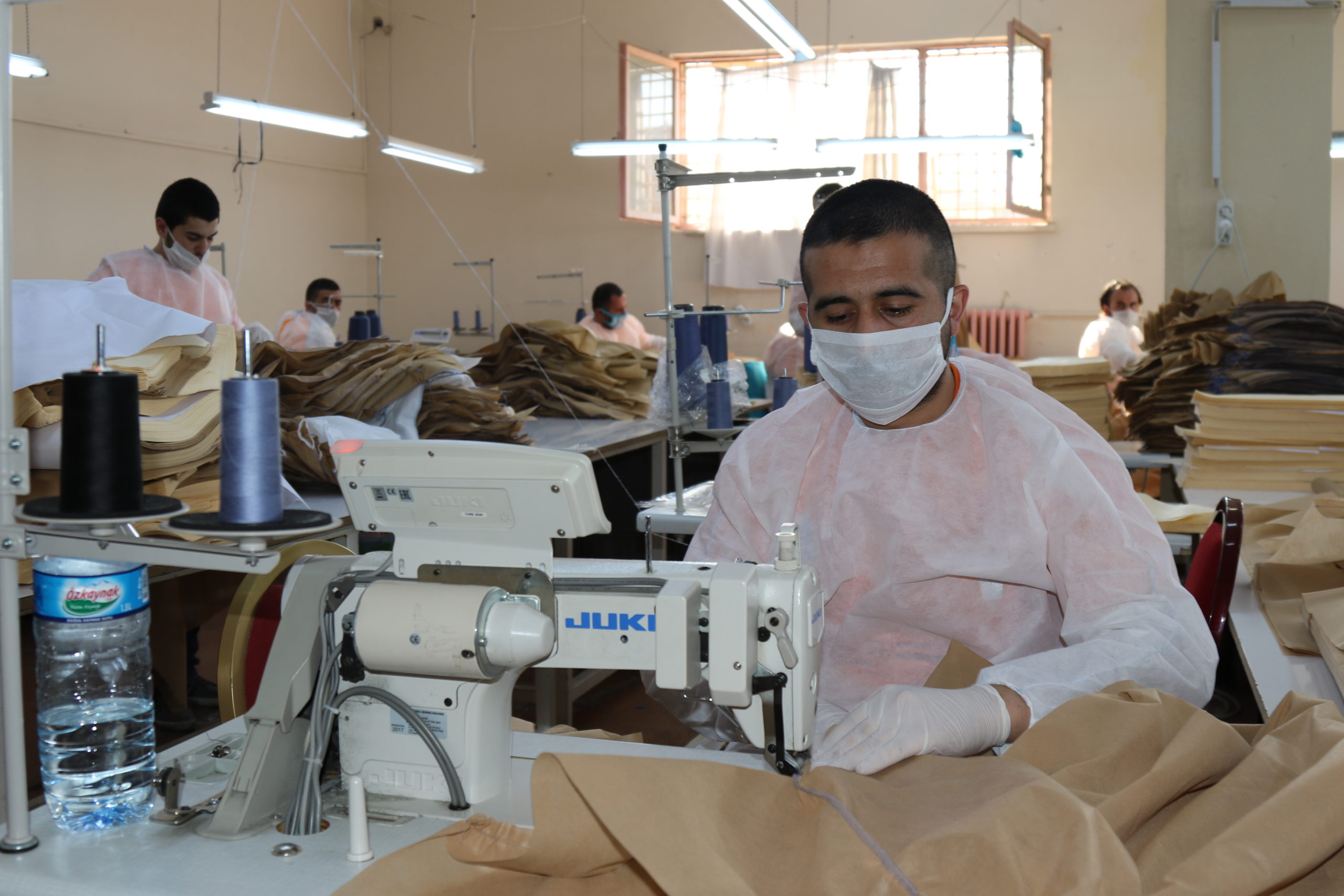 Bursa H Tipi Kapalı Cezaevin’de, ummalı bir şekilde maske ve tıbbı malzeme üretiliyor ancak normal şartlarda, tekstil, mobilya ve gıda fabrikası gibi çalışıyor.