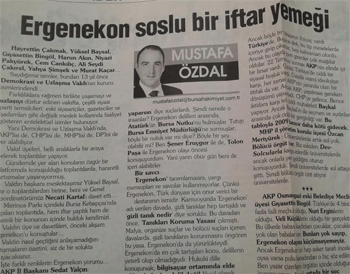 Savcı’nın sözlerini, “Ergenekon Soslu İftar Yemeği” başlığıyla köşeme taşımıştım.