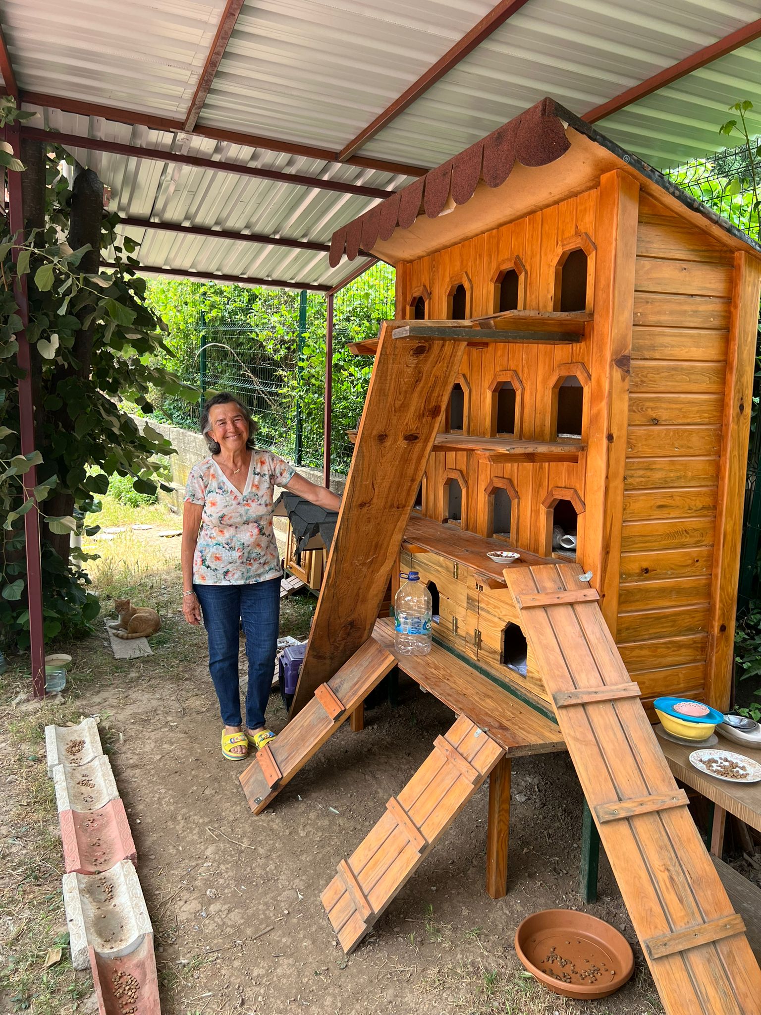 Günel Öğretmen, bunlarla da yetinmemiş, siteye bir kedi evi inşa ettirerek, can dostlara bir yuva daha yaptırmış.