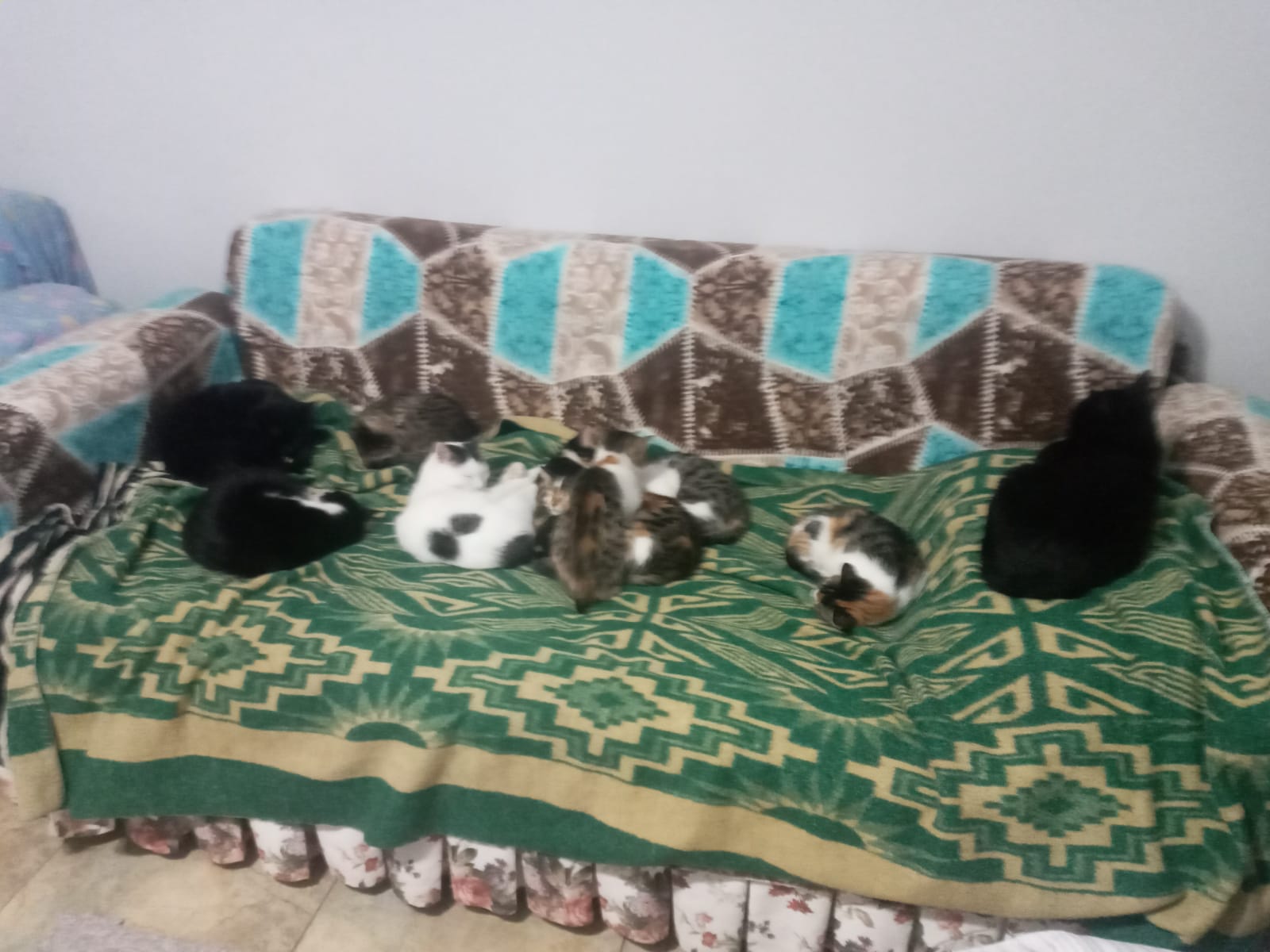 Oturma odası, salon, mutfak ve balkonun her yerinde kediler vardı.