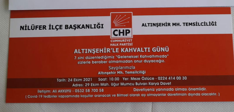 CHP Altınşehir Mahalle Temsilciği’nin gelenekselleştirdiği kahvaltı etkinliği önümüzdeki pazar yapılacak.