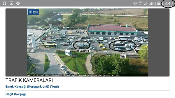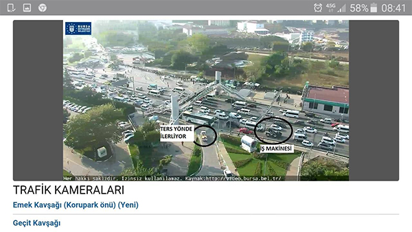 Dün de Bursa Büyükşehir Belediyesi’nin şehir kameralarından aldığı 3 tane fotoğrafı yollamış bana.