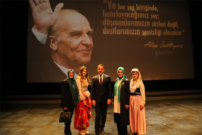 Konuşmalarda ve Bosna belgeselinde İzzetbegoviç’in mücadeleci kimliği, yurtsever yönü, bağımsızlığa adanmış yaşamı ve Türkiye ile olan dostluğuna vurgu vardı.