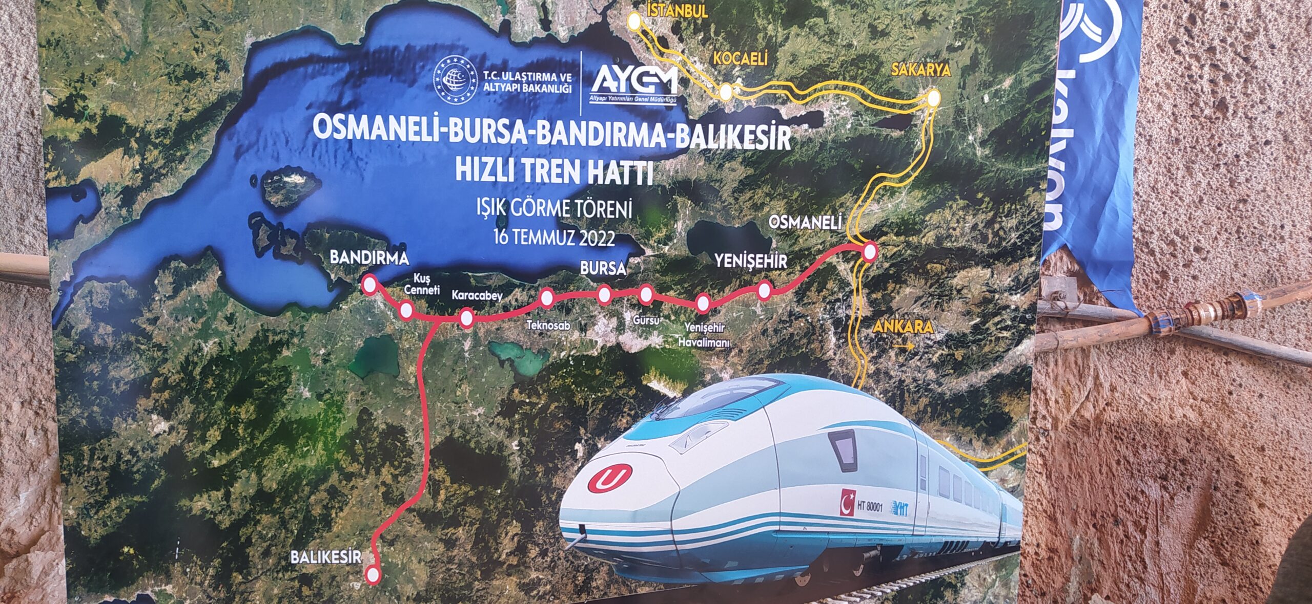 Bir ucu İstanbul’da diğer ucu Ankara’da olan hızlı trenin Bilecik-Bursa etabının 2024 bitmeden tamamlanması planlanıyor.