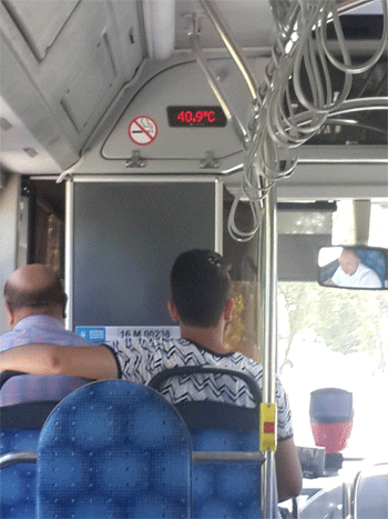 Otobüsün termometresi 40 dereceyi gösteriyor.