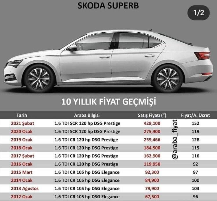 Skoda marka aracın 10 yıl önceki fiyatı 67 bin 500 lirayken, bugün aynı araç 428 bin 100 liradan alıcı buluyor.