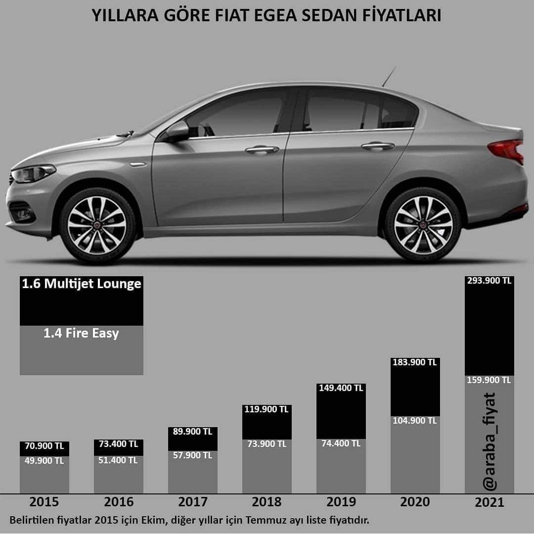 2015’te en ucuz modeli 49 bin 900 liradan alıcı bulan Fiat Egea’nın bugünkü fiyatı ne kadar dersiniz?