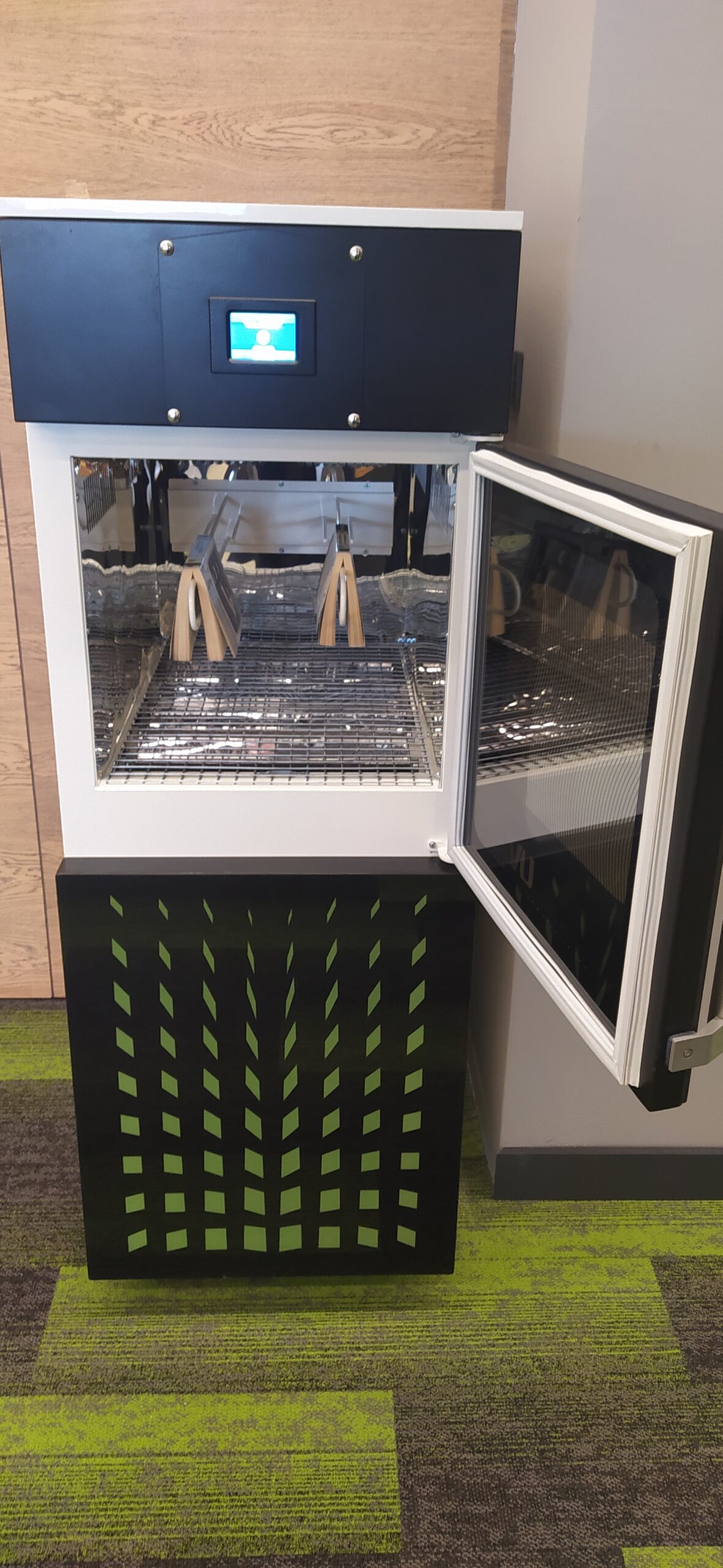 İşte bu fotoğrafta gördüğünüz Uyumayan Kütüphane içindeki kitap dezenfektanı.