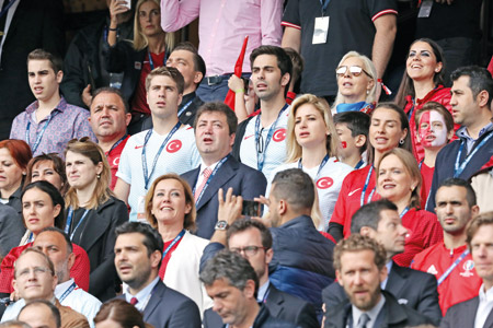 A Milli Takımımız’ın Paris’te oynadığı Hırvatistan karşılaşmasına Türkiye’den ünlü akını vardı. Devlet eski Bakanı Cavit Çağlar, Parc de Princes tribünlerinden Milliler’e destek verirken, Türkiye Futbol Federasyonu Yönetim Kurulu üyesi Mustafa Çağlar da eşi Başak Çağlar’la birlikte bu tarihi anlara tanık olan isimlerdi. Turnuvada görev yapan hakem Cüneyt Çakır da, Hırvatistan maçında ayyıldızlı ekibimiz için tribündeydi.