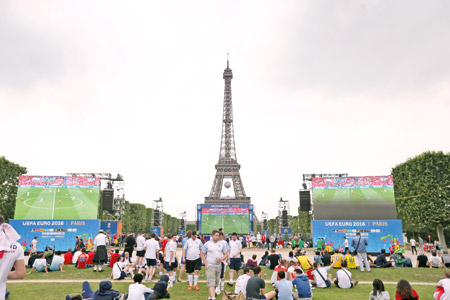 Eyfel Kulesi’nin hemen altındaki alana kurulan taraftar alanı Dünya’nın bir çok ülkesinden gelen turistlerin ilgi odağı… Dev ekranlarda verilen EURO 2016 maçları büyük ilgi topluyor.