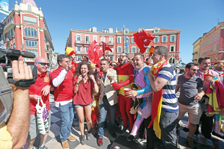 “Futbol sadece bir maçtan ibaret değildir” sözüne en büyük örneği ise Nice’te yaşadık Türkiye-İspanya maçı öncesi. İspanyollar ve Türkler kardeş olsalar bu kadar samimi görünmezlerdi… Dostluk, fair play, eğlence, hüzün ve sevinç nasıl yaşanırsa aynen uyguladılar… Bir kişinin şikayet ettiğini ne duydum ne de gördüm… Fotoğraflarla o coşkuyu sizlere göstermeye çalıştık. Zaten, bu tür organizasyonların birinci amacı eğlenmek… O da Fransa’da fazlasıyla var…