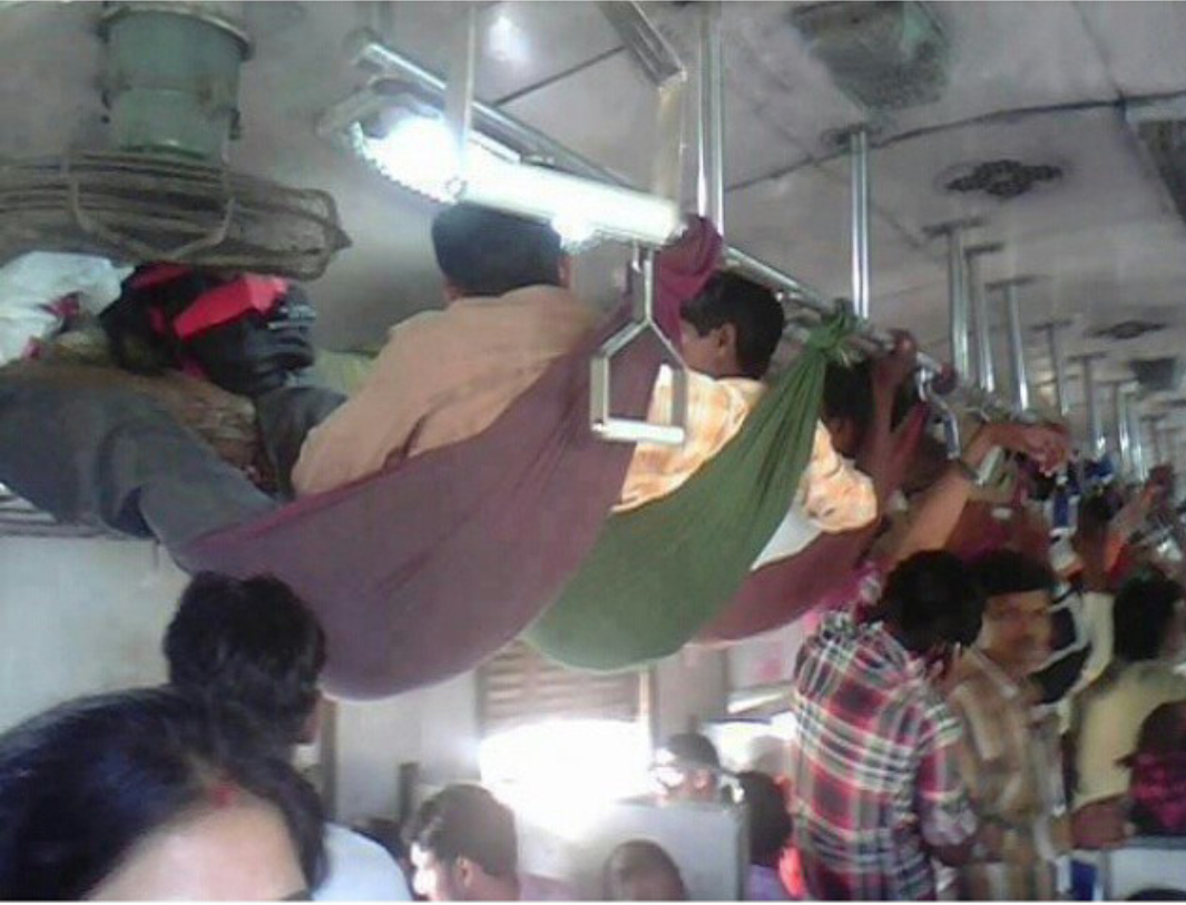 Sabahları ve akşamları belli saatlerde, Bursaray vagonları öyle dolu oluyor ki, yolu uzun olan ayaktaki yolcular, bir gün fotoğraftaki vatandaşların sistemini uygularsa şaşırmayalım!