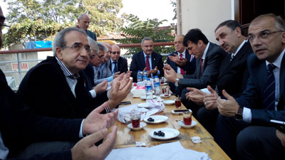 AK Parti Bursa eski milletvekilleri Ali Kul, Hayrettin Çakmak, Faruk Anbarcıoğlu, Osmangazi Belediye Başkanı Mustafa Dündar, Mustafakemalpaşa İlçe Belediye Başkanı Sadi Kurtulan, sırf miting için Batı Trakya’dan gelen ağır konuklar ki aralarında Başkan Dündar’ın babası Hüseyin Amca da var…