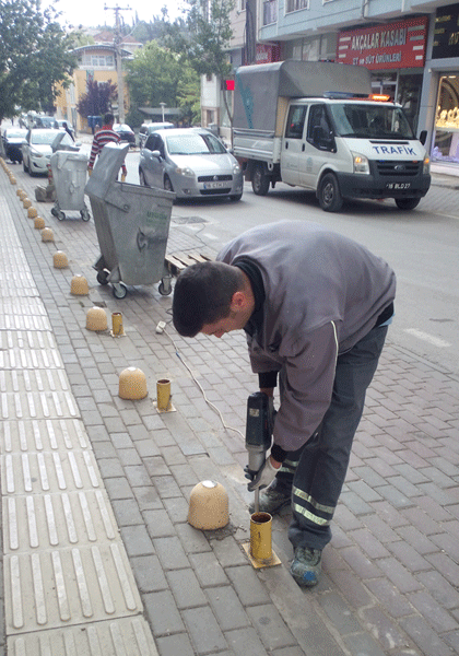 Yaya yollarının kenarlarına mantarlar monte ediyorlar.