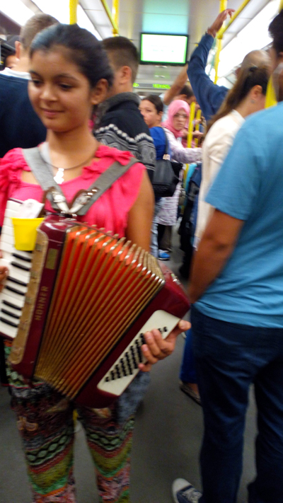 Cebimdeki bozuk paraları bardağına atarken kulağına eğilip bir de istekte bulunuyorum akordeoncu kızdan…