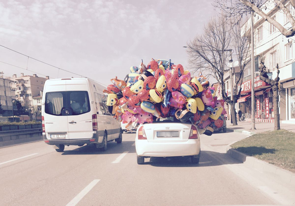 Bu balon yüklü özel otomobil fotosu, Bursa caddelerinden…