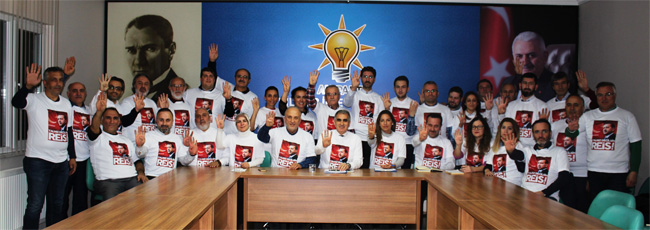 Üzerinde, Cumhurbaşkanı Recep Tayyip Erdoğan‘ın resmi olan ‘Yalnız değilsin Reis!” yazılı tişörtlerden bastırmışlar.