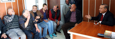 Erdoğan bir şeyler anlatıyor, taksiciler iki elleriyle ağızlarını kapatıp kahkahalarla gülüyorlar.
