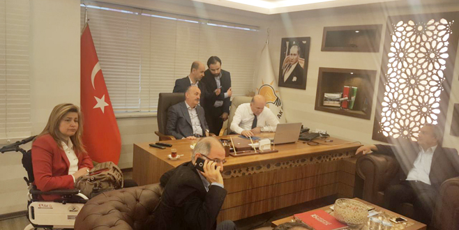 Çalışma Sosyal ve Güvenlik Bakanı Mehmet Müezzinoğlu, eski İçişleri Bakanı Efkan Ala, diğer Bursa milletvekilleri, belediye başkanları ve parti yöneticileri, İl Başkanı Cemalettin Torun‘un makam odasındaydılar…
