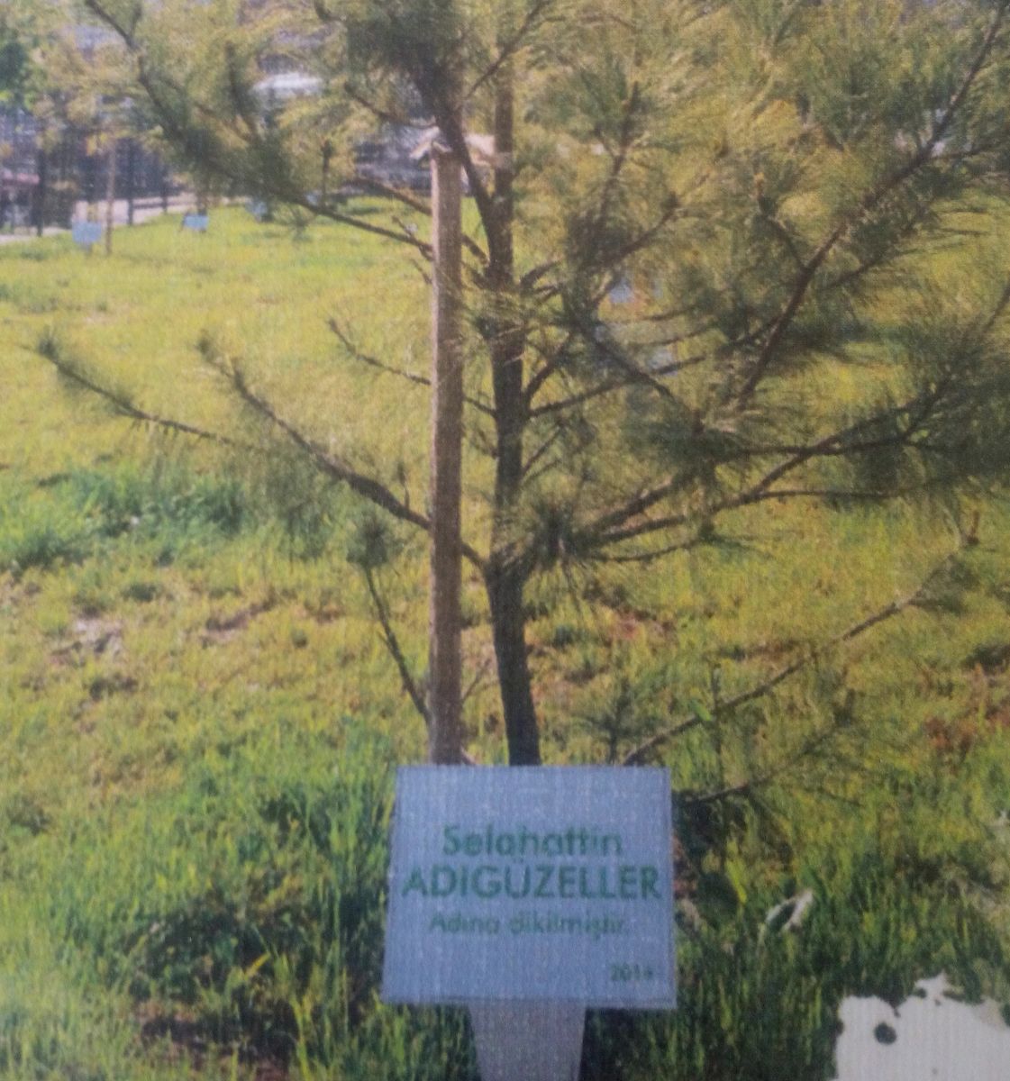 Geçen seneki basın toplantısına katılanların adına dikilen bir çam fidanı resmi!