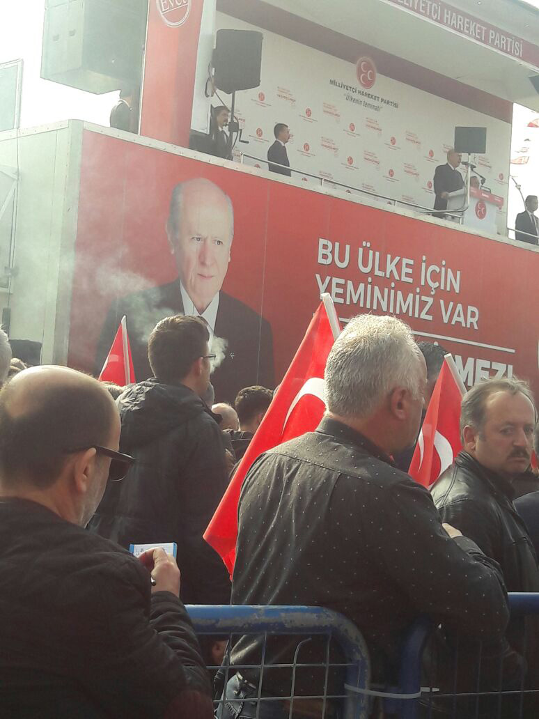 • Meydanı dolduran MHP’lilerin ‘evet’ konusundaki kararlılığını daha yakından da görelim diye düşünmüş de olabilirler.