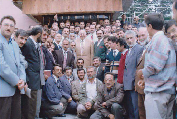 Parti eğitim seminerine katılanlar, Milli Görüş’ün efsane lideri, merhum Prof. Dr. Necmettin Erbakan’la seminer sonunda hatıra fotoğraf çektirmişler.
