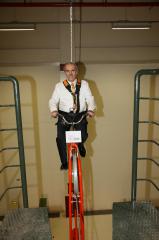 Yerden 10 metre yükseklikteki denge bisikletine binip bizzat pedal çevirmiş.