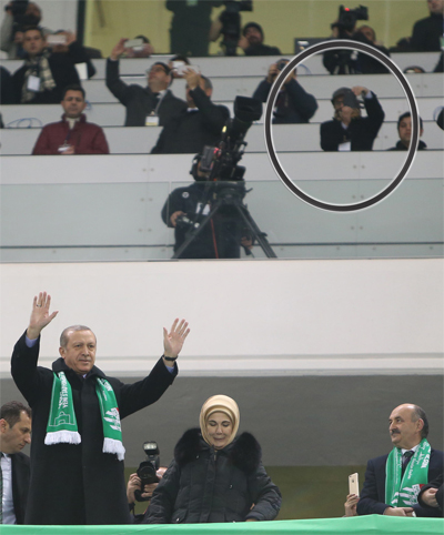 Hemen arka platformdaki basın tribünündeki gazeteciler, en güzel görüntüyü alma peşinde…