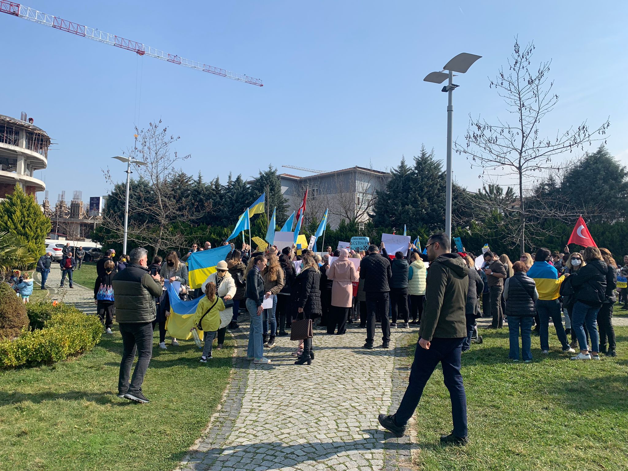 “Ailelerimiz güvende değil. Bursa’da yaşayan çocuklarımızın tatil dönemlerinde Ukrayna’da oynadıkları, gezdikleri sokaklar bombalanıyor. Siviller katlediliyor. Ailelerimizin üyeleri ölüyor.”