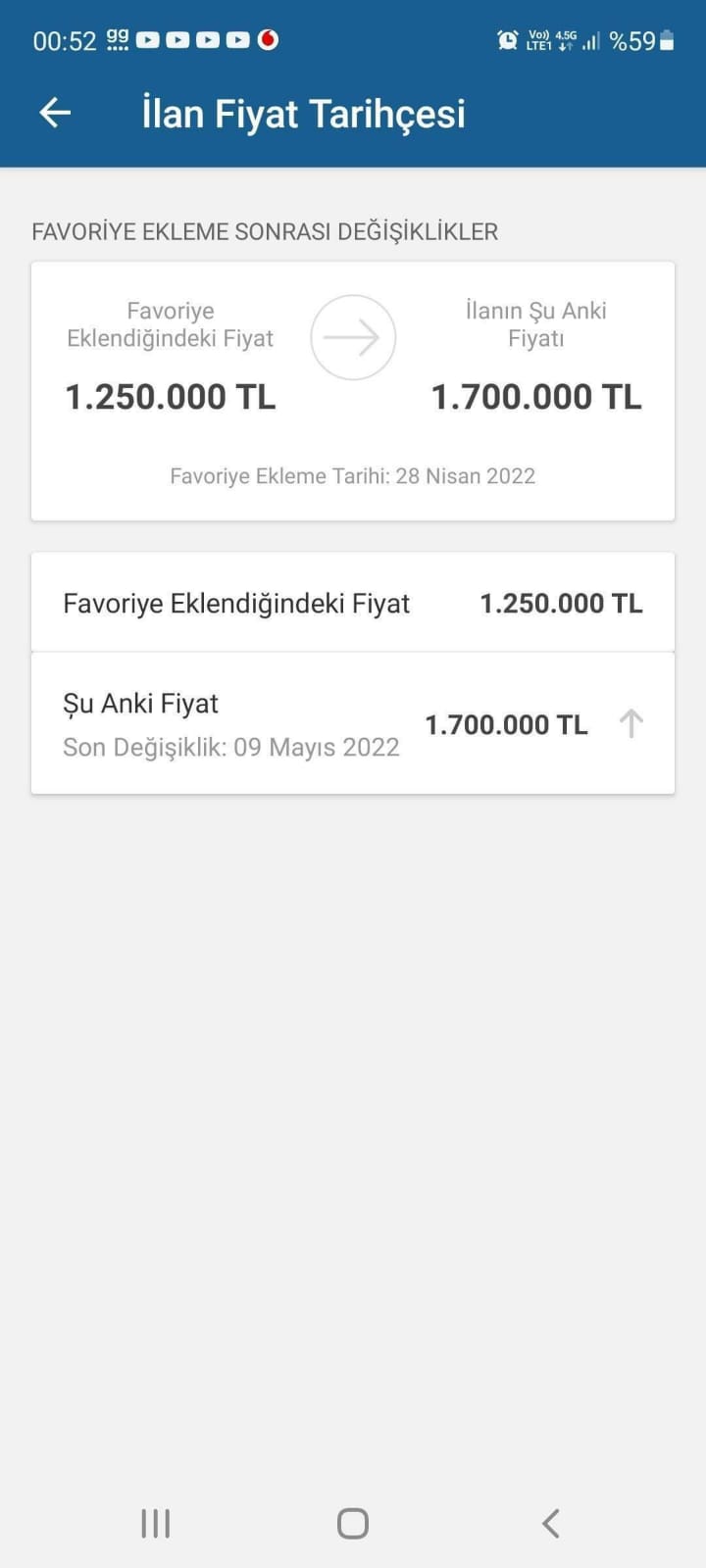 İlanın fiyatı 1 milyon 700 bin liraya çıktı.