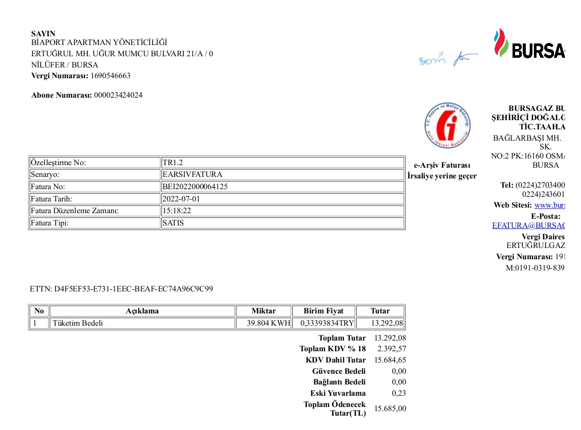 Bu kez aynı apartman için 15 bin 685 liralık fatura düzenlendi.