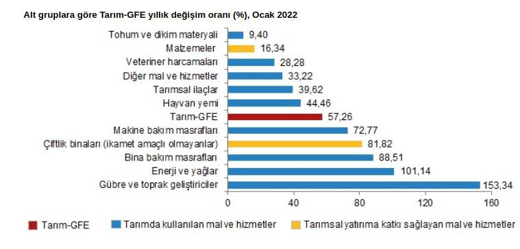 Türkiye İstatistik Kurumu’nun açıklamasına göre “Tarımsal girdi fiyat endeksi (Tarım-GFE)” hem aylık hem de yıllık bazda endeks tarihinin rekor seviyesine yükseldi.