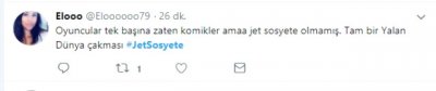 Gülse Birsel’in yeni dizisi Jet Sosyete’yi kimi sosyal medya kullanıcıları çok beğenirken kimisi de hiç beğenmedi. Birsel’in daha önceki dizisi Avrupa Yakası gibi başarılı olamayacağını söyleyen kişiler çoğunlukta yer aldı.