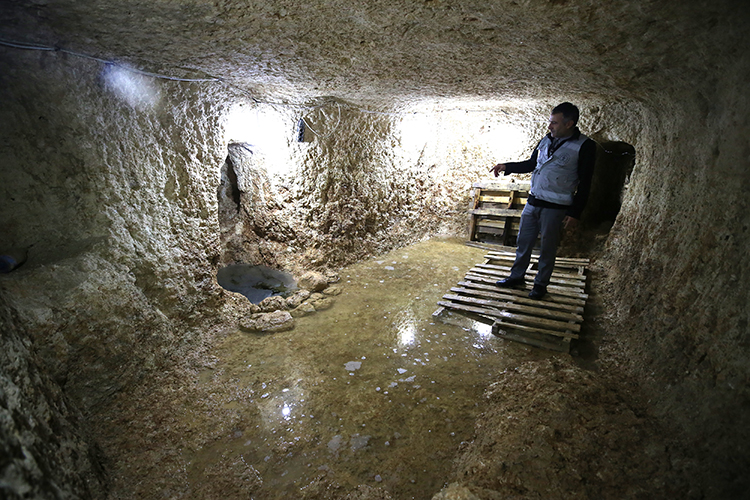 Sarnıca ulaşan tünellerde güvenlik amaçlı yuvarlak taşlarla kilitleme mekanizmaları olduğunu aktaran Uğuz, kaynağın, düşmanlarca zehirlenme riskine, kuşatma zamanlarında ya da kriz dönemlerinde yağmayı engellemeye karşı korunduğunu dile getirdi.