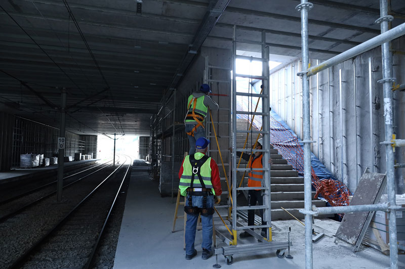 Çalışmalar kapsamında kuyu temel ve perde imalatları tamamlandı, mevcut hat yolu perdesi peron kotuna göre kesildi. Radye temel, peron katı, gişe katı ve merdivenlerin betonarme imalatları tamamlanırken, prefabrik kirişlerin montajının yapılabilmesi için katener sistemi alçaltıldı ve prefabrik kirişlerin montajı gerçekleştirildi. 4 adet yürüyen merdiven yerleştirilirken, elektrik tava imalatı ile platform katı mekanik seramik cephe kaplama imalatı devam ediyor.