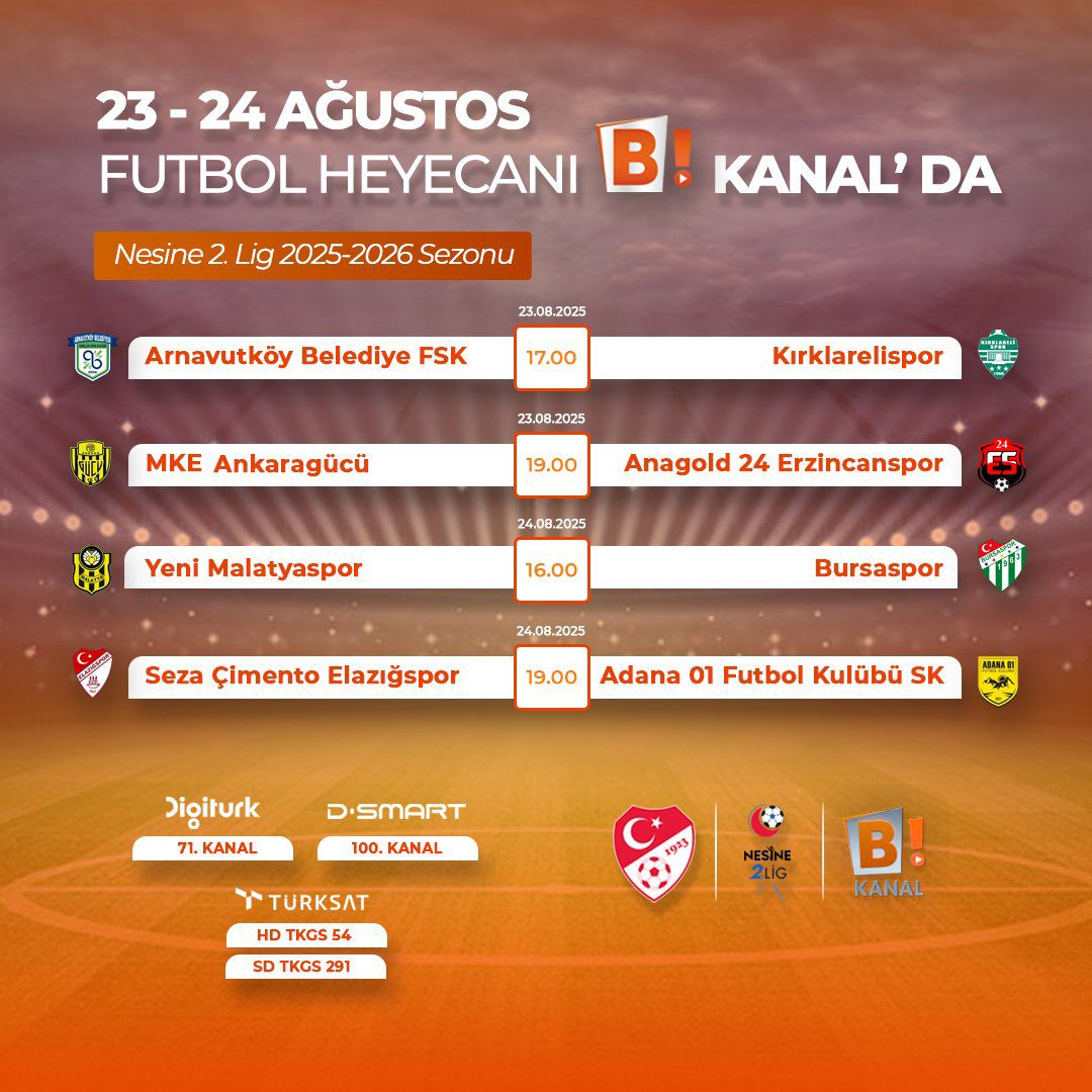 TFF Nesine 2. Lig ve 3. Lig maçlarını önümüzdeki 2 sezon boyunca yayın haklarını alan Bi Kanal, Bursaspor’un pazar günü saat 16.00’da Yeni Malatyaspor ile oynayacağı karşılaşmayı canlı yayınlayacağını duyurdu.