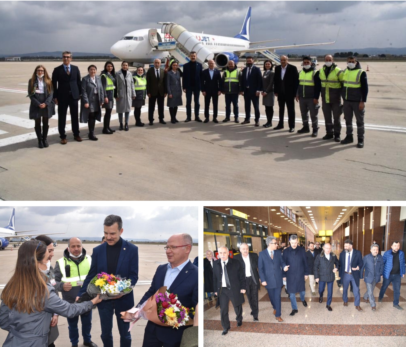 300 kişinin çalıştığı Yenişehir Havaalanı personeli tarafından çiçeklerle karşılanan siyasiler, Muş seferi yolcularını da uğurladılar.
