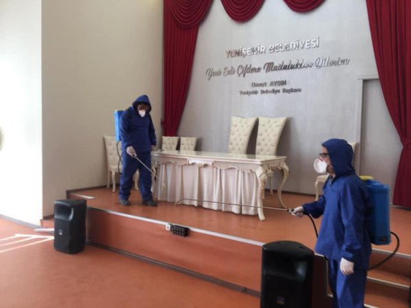 Yenişehir Belediyesi, Çin ve İtalya’da etkisini gösteren korona virüs hastalığına karşı alınan tedbirleri artırdı. Sağlık Bakanı Dr. Fahrettin Koca’nın Türkiye’de korona virüs görüldüğünü açıklamasıyla birlikte harekete geçen Temizlik İşleri Müdürlüğü ve Park Bahçeler Müdürlüğüne bağlı ekipler, ilçede bulunan kamu binaları ve okulların ilaçlama ve dezenfeksiyon işlemlerine başladı.