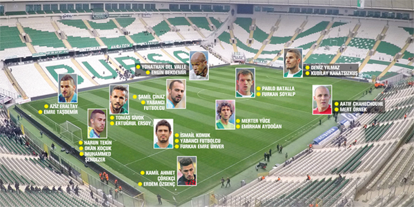 Yeşil beyazlılar, orta alanda da Merter Yüce’nin yanına yabancı bir isim almayı düşünüyor. Yine bu bölgede Şamil Çinaz’ın takımda tutulması beklenirken, Emirhan Aydoğan ve Furkan Soyalp’da kadroda yer bulacak. Pablo Martin Batalla da forvet arkasında alternatifsiz isim olacak. Yeşil beyazlı yönetimi düşündüren bölge ise kanatlar. Bu sezon bu bölgede büyük sıkıntı yaşayan Bursaspor’un hedefindeki isimler ise Sivasspor’dan Aatıf, Kasımpaşaspor’da kiralık olarak forma giyen De Valle ve Eskişehirspor’dan Engin Bekdemir. Yeşil beyazlı yönetim bu 3 futbolcu için de görüşmelere başladı.